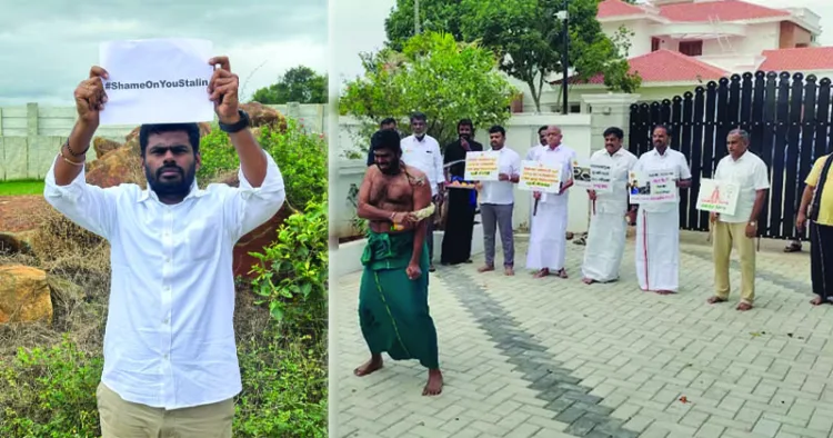 സ്വന്തം ശരീരത്തിൽ ചാട്ടവാർ കൊണ്ടടിച്ച് അണ്ണാമലൈ