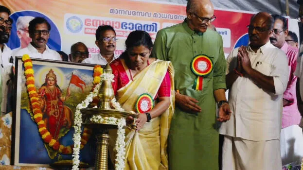 ഭാരതാംബയ്ക്ക് മുന്നിൽ വിളക്ക് കൊളുത്തിയ പഞ്ചായത്ത് പ്രസിഡന്റിനെ സിപിഎം തരംതാഴ്ത്തി.